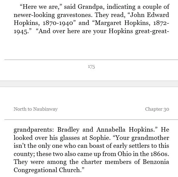 At the end of my second novel, North to Naubinway, I have several family members visiting the Benzonia Township Cemetery, and so I am bound to work around the names and dates I’ve already established.